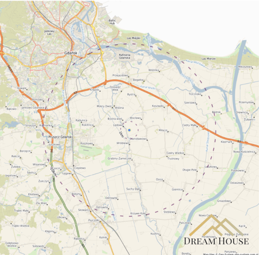 Działka położona jest bliskiej odległości od rzeki Wisły.