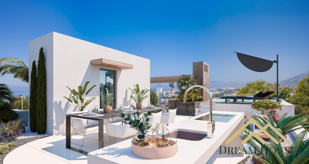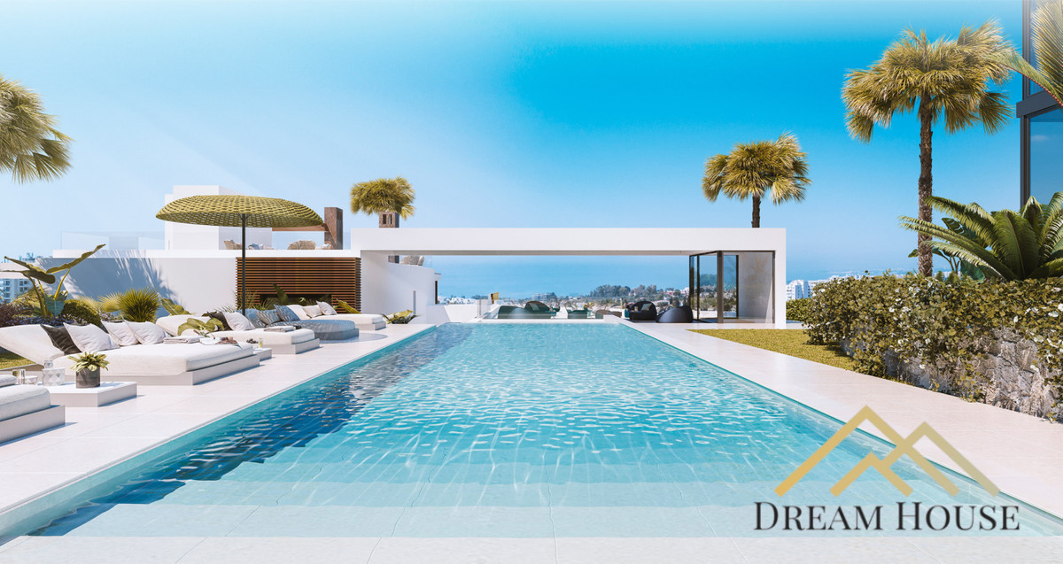 Wspólnota 27 luksusowych domów w zabudowie bliźniaczej z przestronnymi pokojami, prywatnymi ogrodami, basenami i oszałamiającym widokiem na morze znajduje się w Marbelli w tym kompleksie mieszkaniowym. Dzięki wielopoziomowej budowie można podziwiać zapierający dech w piersiach widok na Morze Śródziemne.