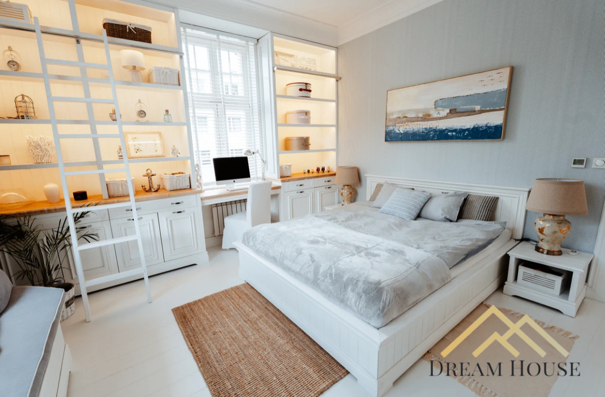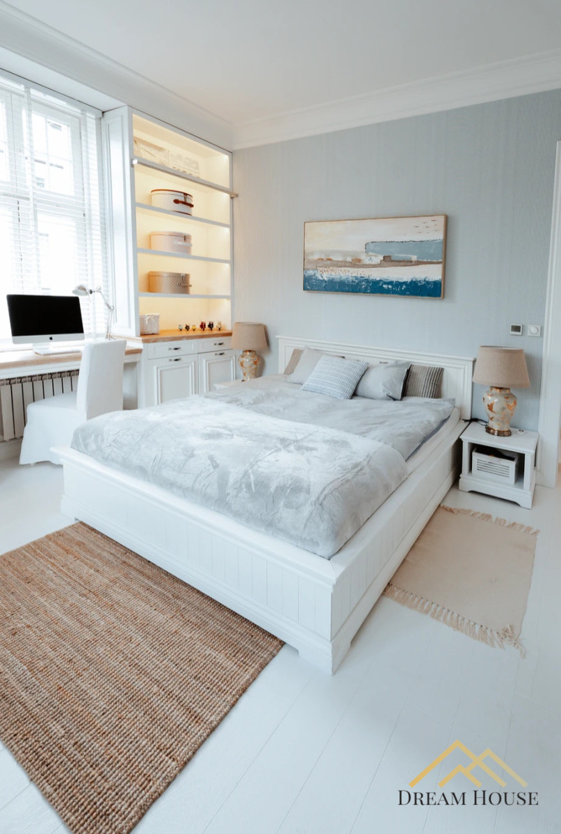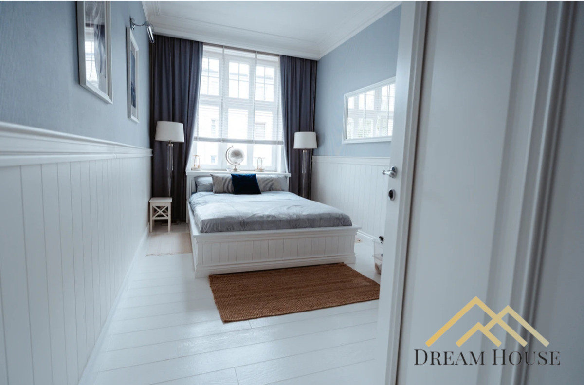 Apartament oferuje dwie przestronne sypialnie, elegancką jadalnię, w pełni wyposażoną kuchnię, przytulny salon z telewizorem i ogromną kanapą. Do dyspozycji jest także komfortowa wanna z hydromasażem, sauna i własna siłownia.
