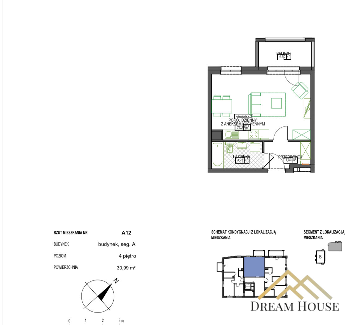 Na sprzedaż mieszkanie o powierzchni 30,99 m2 w samym sercu Gdańska składające się z: