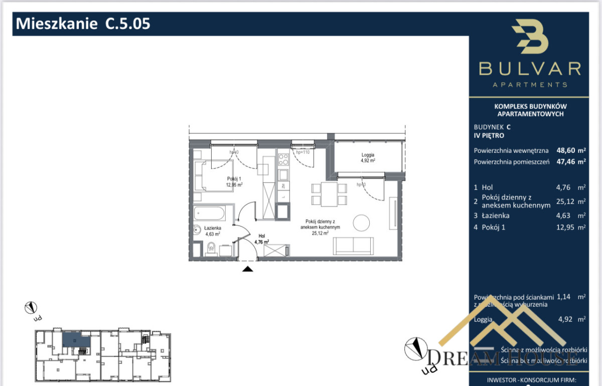 Przedstawiamy na sprzedaż apartament o powierzchni 49,61 m2, na prestiżowym osiedlu Bulvar.