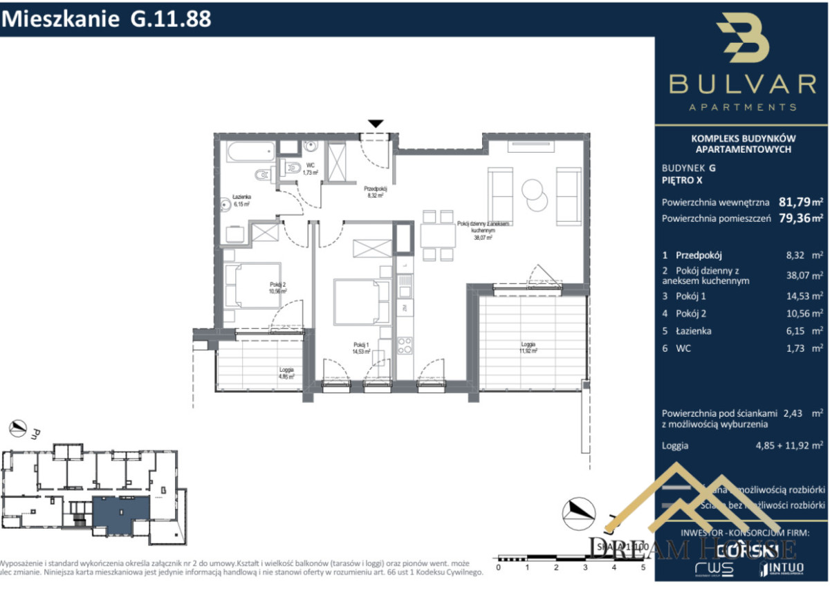 Przedstawiamy na sprzedaż apartament o powierzchni 81,72 m2, na prestiżowym osiedlu Bulvar.