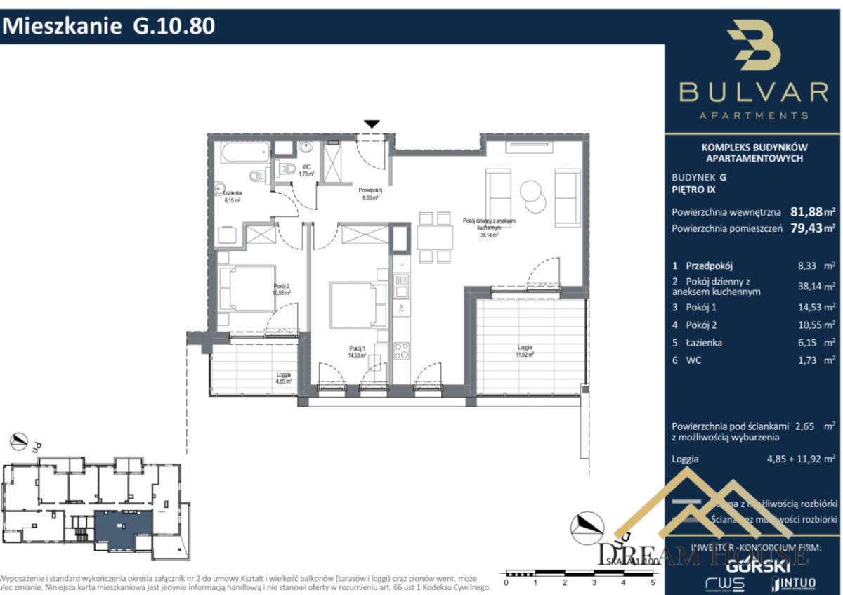 Przedstawiamy na sprzedaż apartament o powierzchni 81,81 m2, na prestiżowym osiedlu Bulvar.