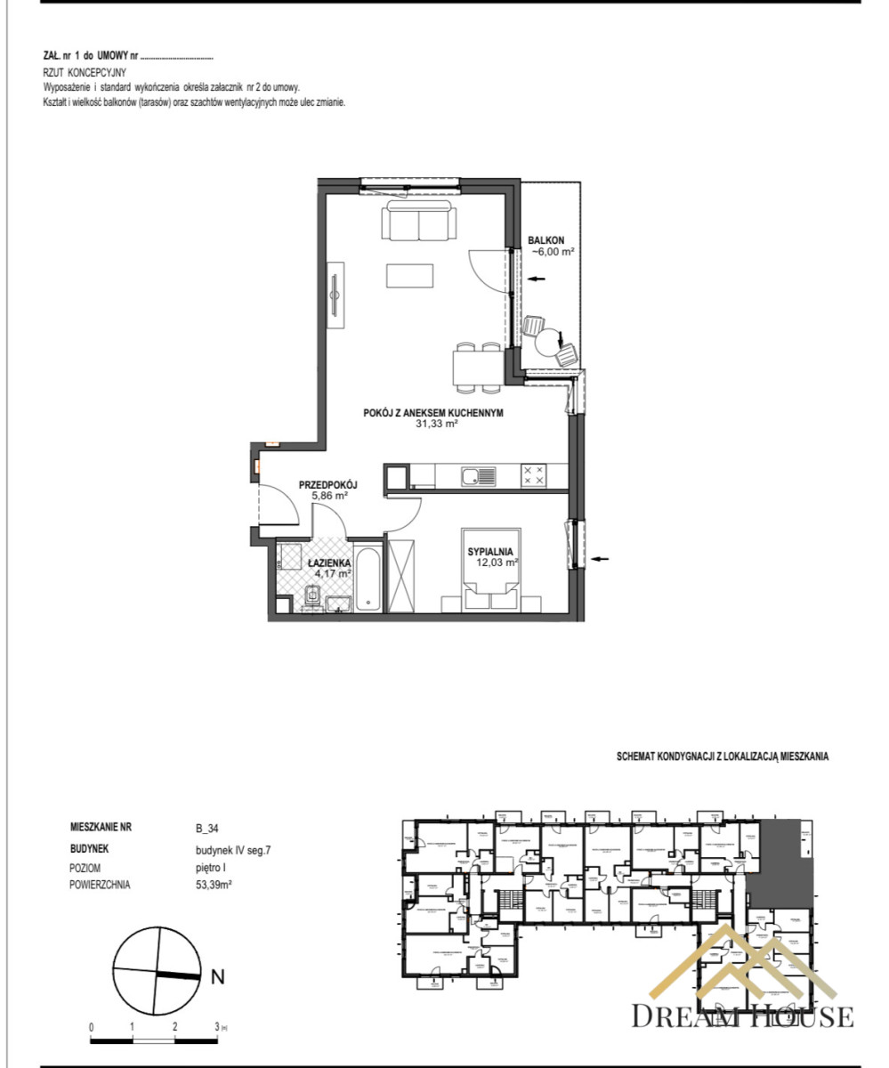 Na sprzedaż 2-pokojowe mieszkanie o powierzchni 53,39 m2 w którego skład wchodzi: