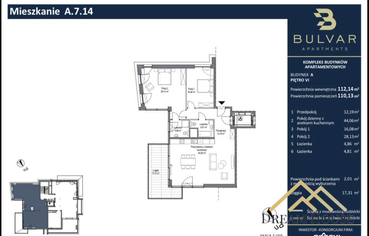 Przedstawiamy na sprzedaż apartament z bezpośrednią windą do apartamentu o powierzchni 111,50 m2, na prestiżowym osiedlu Bulvar.