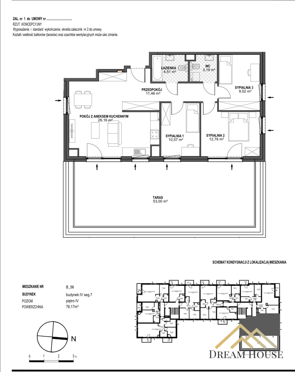 Na sprzedaż 4-pokojowe mieszkanie o powierzchni 78,17 m2 wraz tarasem o powierzchni 53 m2 w którego skład wchodzi: