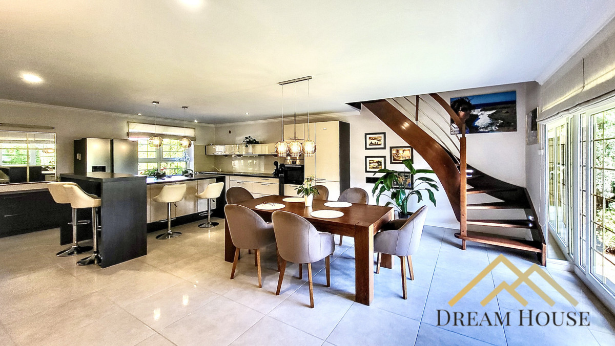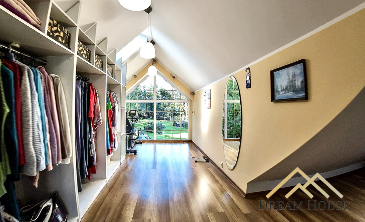 Dom charakteryzuje się wysokim standardem wykończenia, przy zastosowaniu materiałów najwyższej jakości. Przemyślany układ pomieszczeń, liczne garderoby, łazienki oraz duże pokoje dzienne zapewniają maksymalny komfort codziennego życia. Całość zachowana w idealnym stanie technicznym i wizualnym. Działka o powierzchni 1 290 m2.
