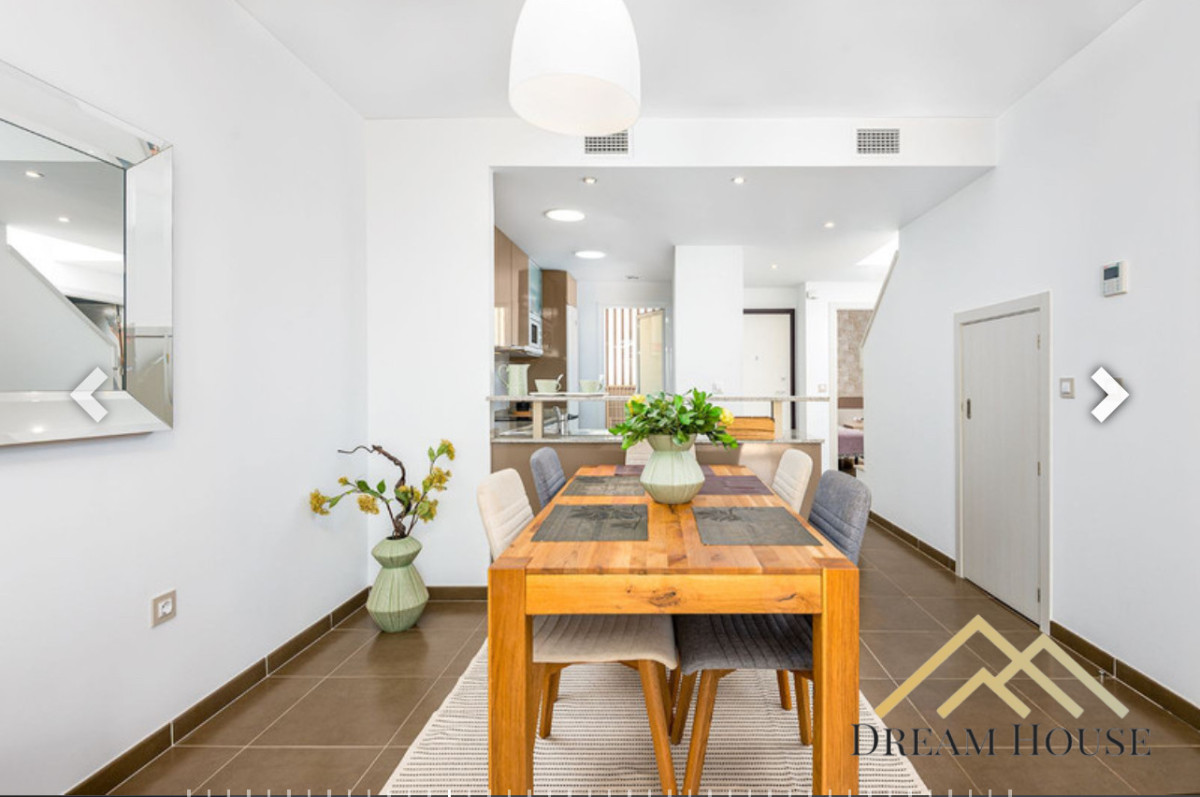 Salon jest jasny i przestronny ze stołem jadalnym i częścią wypoczynkową.