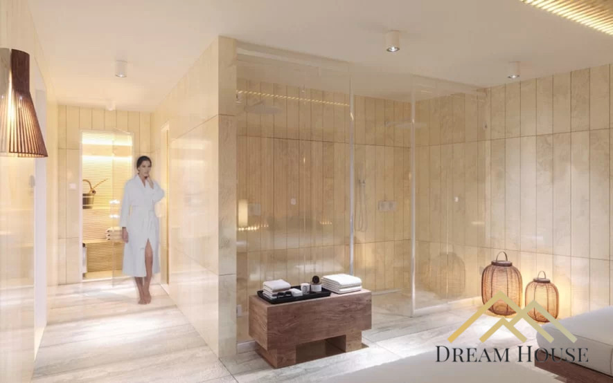 Mieszkańcy apartamentów będą mogli korzystać z w pełni wyposażonej siłowni, sauny suchej i mokrej oraz strefy rekreacyjnej ze stołem bilardowym, która też świetnie się sprawdzi jako przestrzeń do spotkań towarzyskich.