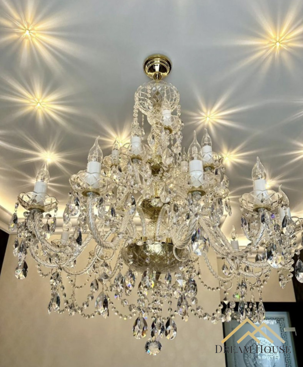• Elementy dekoracyjne z 24-karatowego złota, kryształowe żyrandole Swarovski, podłoga Versace