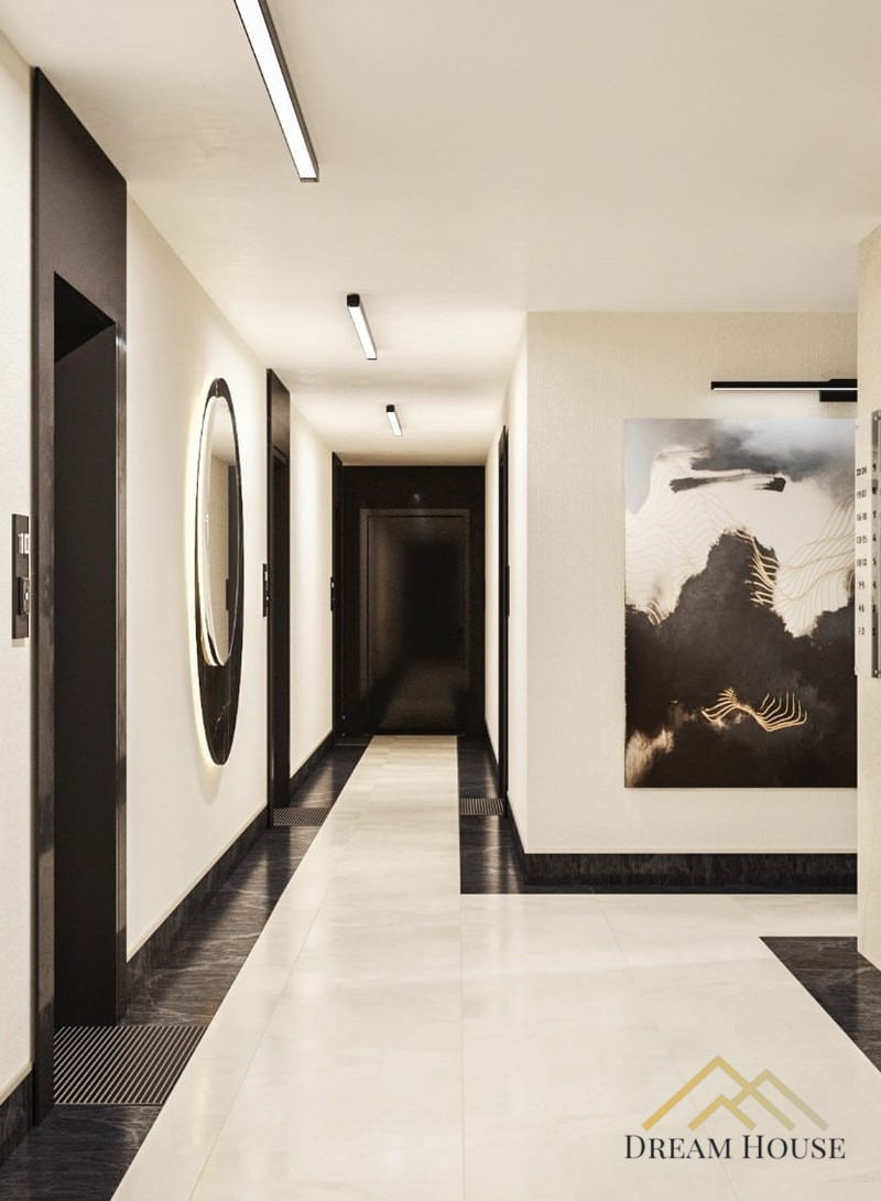 Dopełnieniem całości będzie aranżacja części wspólnych. Projekt foyer, sali rekreacyjnej i strefy spa powstał w duchu nowoczesnej klasyki, czyli równowagi pomiędzy