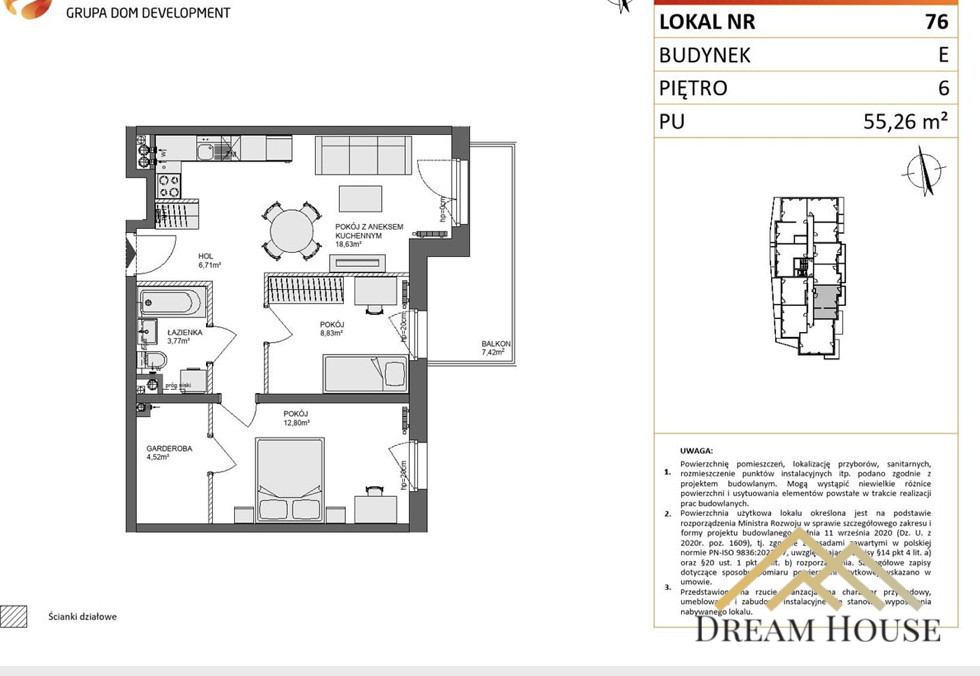 Na sprzedaż 3-pokojowe mieszkanie o powierzchni 55,26 m2 w którego skład wchodzi: