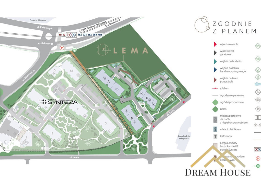 Świetna lokalizacja Osiedla Lema pozwala cieszyć się łatwym dostępem do punktów handlowych, usługowych, a także oferty edukacyjnej. Świetna komunikacja tramwajowa i autobusowa