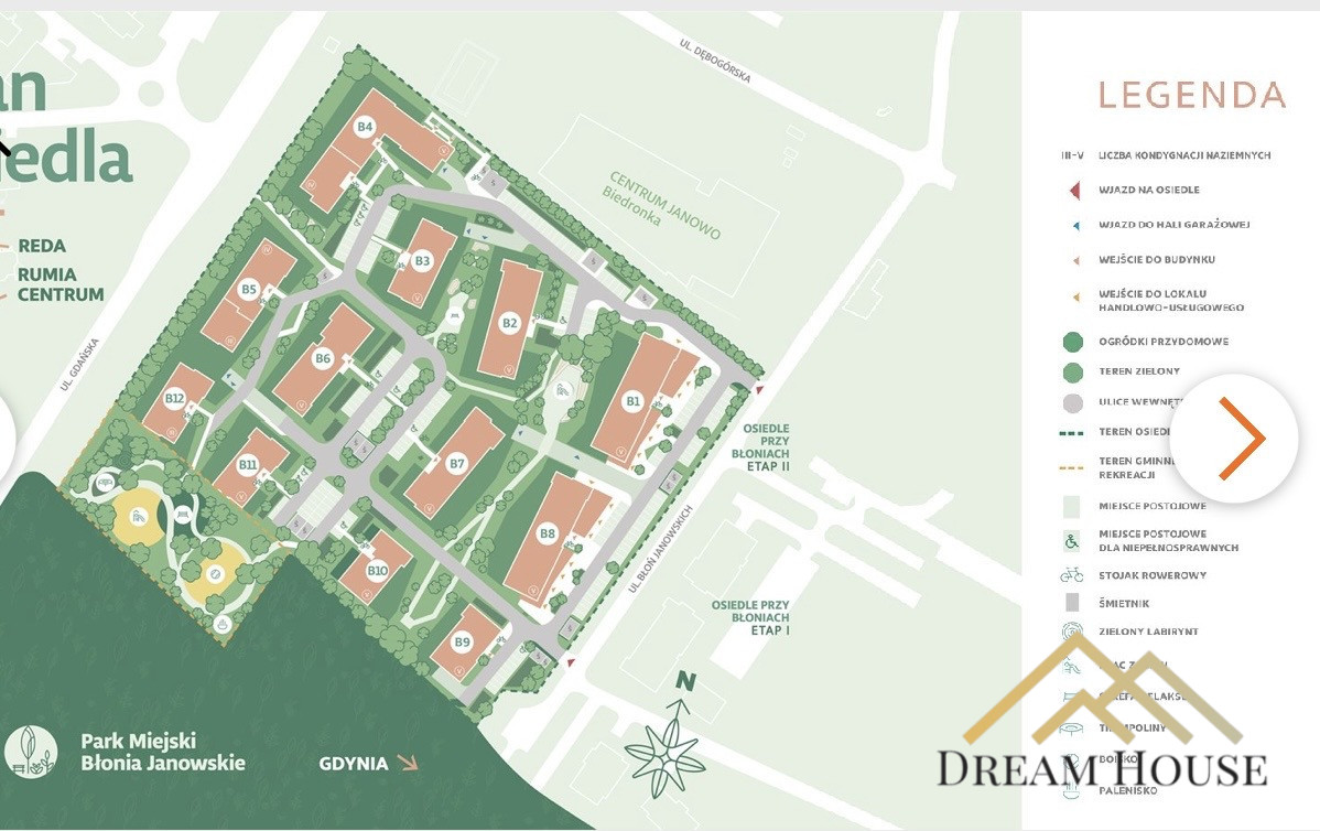 Rumia Janowo to prężnie rozwijająca się dzielnica, idealna dla osób, które szukają spokojnego miejsca do życia, a jednocześnie chcą być blisko centrum i miejskich atrakcji. Codzienną wygodę zapewnia rozwinięta infrastruktura handlowa, usługowa, edukacyjna, a tereny rekreacyjne sprzyjają aktywnemu trybowi życia. Tuż przy osiedlu, jako I etap nowo powstającego Parku Miejskiego Błonia Janowskie, została zrealizowana nowoczesna Gminna Strefa Rekreacji. Mieszkańcy Rumi Janowo komfortowo dojadą też do Gdyni i innych miejscowości.