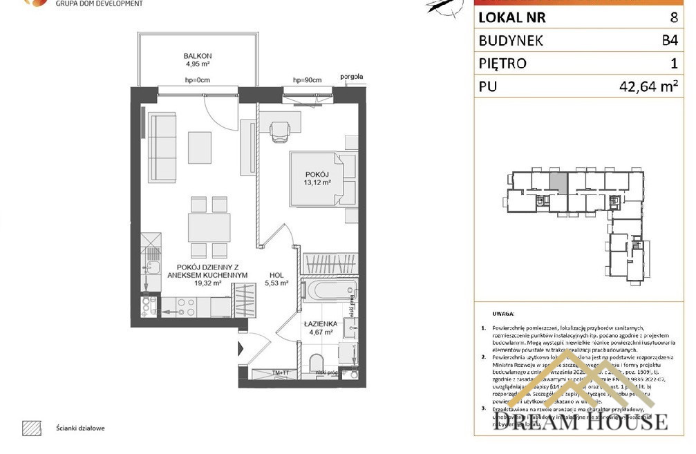 Na powierzchnię 42,64 m2 składa się: